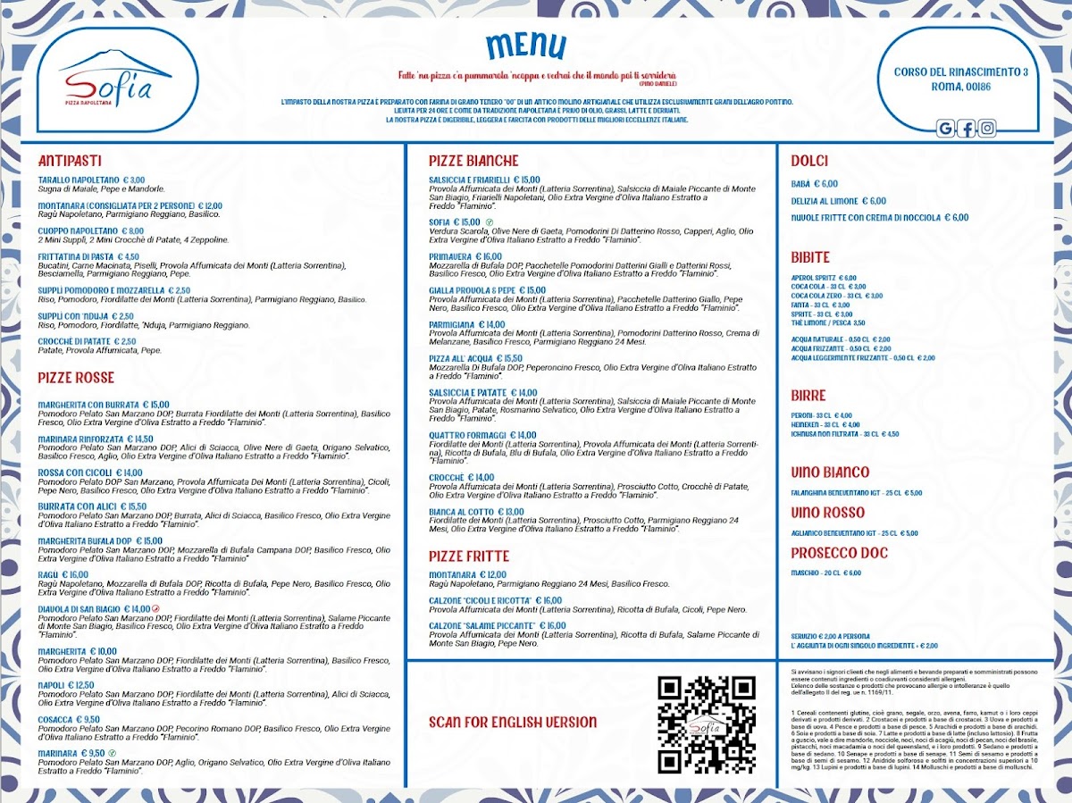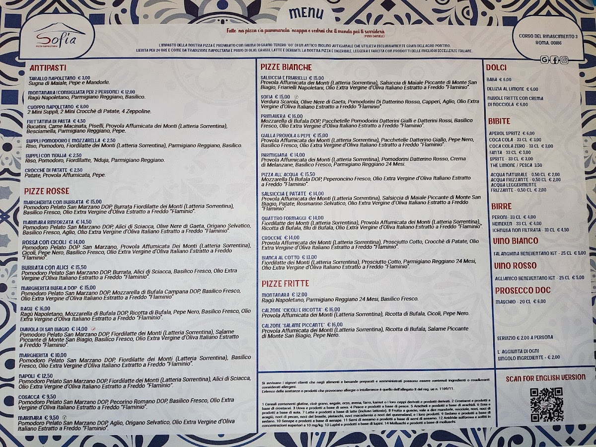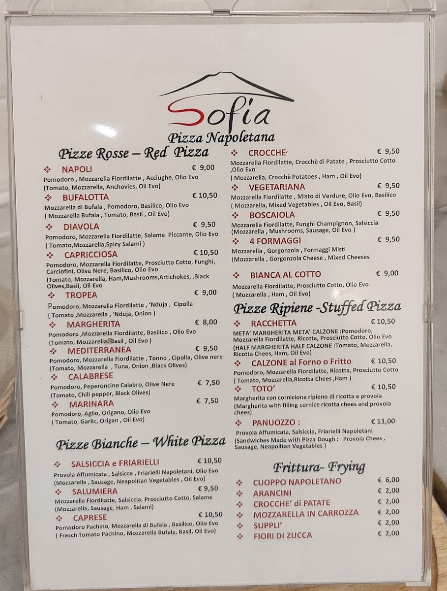 SOFIA PIZZA NAPOLETANA is a true culinary jewel nestled in the heart of Rome, offering an authentic taste of Neapolitan pizza that celebrates tradition with every bite. Their menu showcases a rich variety of handcrafted pizzas, from the classic Margherita and Marinara to flavorful options like Salsiccia e Friarielli, 4 Formaggi, and the indulgent Bufalotta. Each pizza boasts a perfectly baked crust—soft, airy, and lightly crisped—highlighting the skill behind their dough-making.
