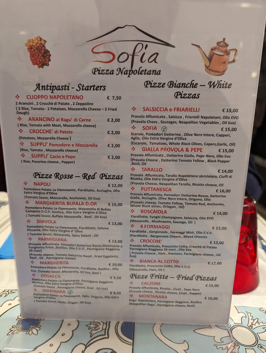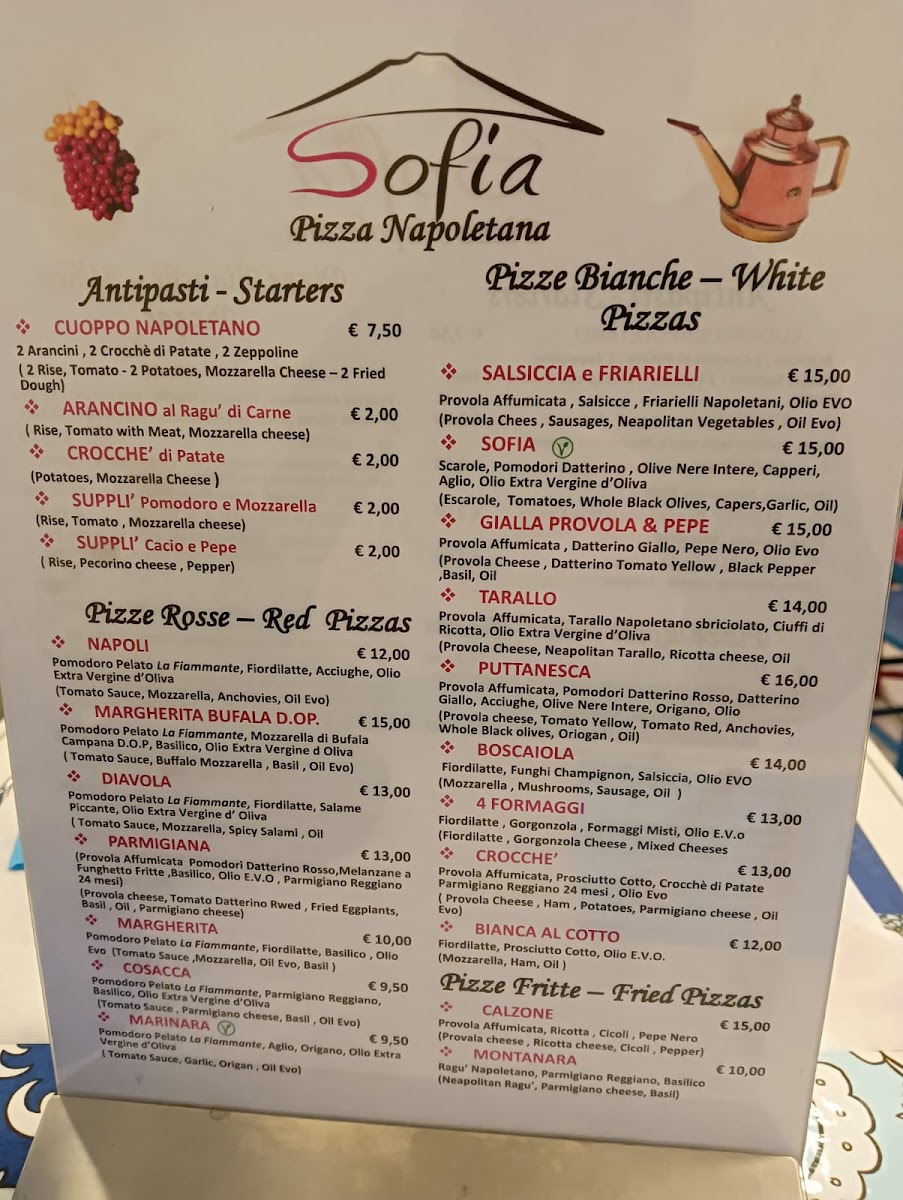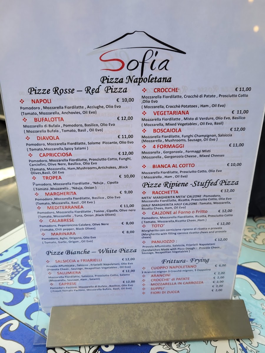 SOFIA PIZZA NAPOLETANA is a true culinary jewel nestled in the heart of Rome, offering an authentic taste of Neapolitan pizza that celebrates tradition with every bite. Their menu showcases a rich variety of handcrafted pizzas, from the classic Margherita and Marinara to flavorful options like Salsiccia e Friarielli, 4 Formaggi, and the indulgent Bufalotta. Each pizza boasts a perfectly baked crust—soft, airy, and lightly crisped—highlighting the skill behind their dough-making.